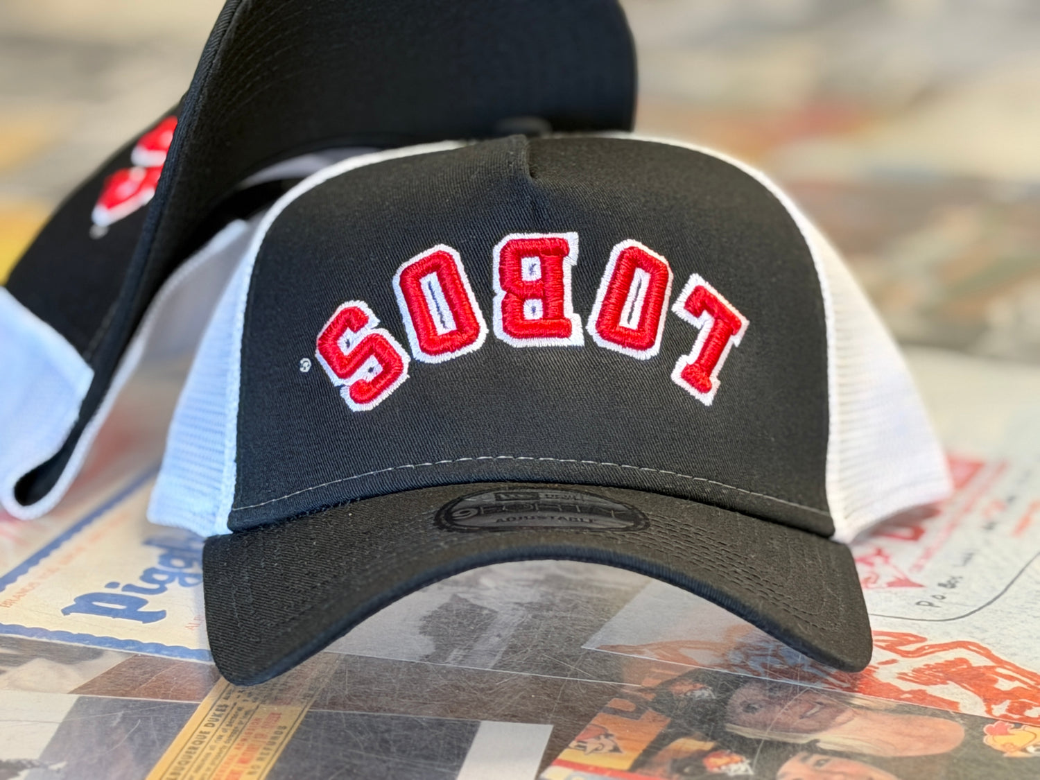 UNM Lobos New Era 940 A Frame Adjustable Black White Upside Down Lobos